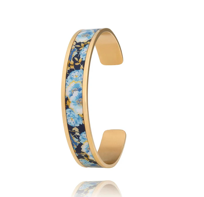 Inspiré par un jardin secret où s’épanouissent des pivoines aux teintes célestes, ce bijou attire les regards. Recouvert de fleurs bleues, ce jonc pivoine en acier Louise Garden conserve son éclat durablement grâce à une couche de vernis sur un acier inoxydable.