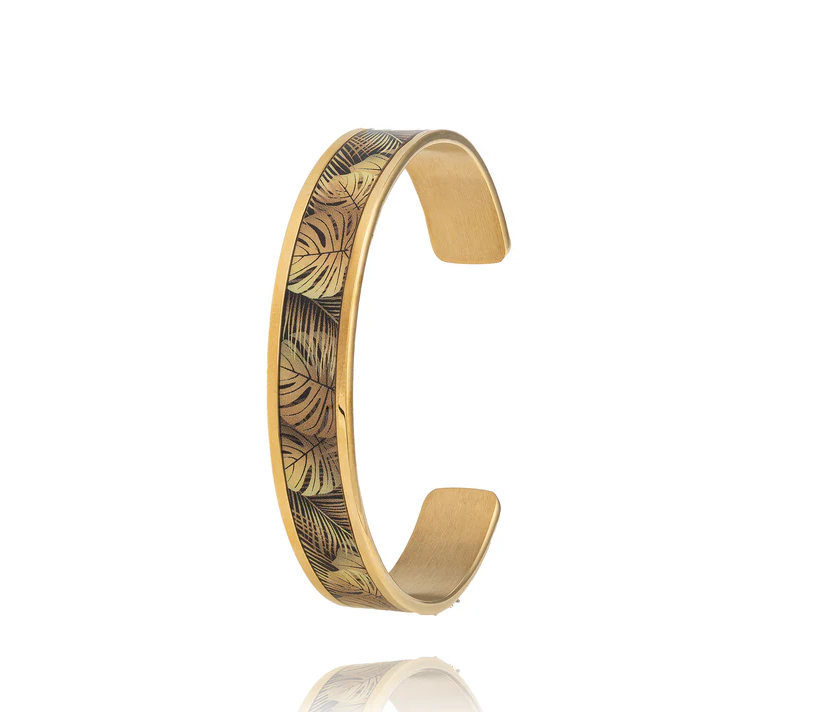 Le bracelet d'amitié pour femme déliciosa Louise Garden est une petite manchette femme faisant partie des bijoux colorés nature hypoallergéniques grâce à l’acier 316 L dont il est composé. Ce bracelet manchette, qui ne s’oxyde pas en métal doré, est recouvert d’un imprimé au graphisme représentant les feuilles luxuriantes de la plante exotique Monstera Deliciosa. Ce petit jonc coloré, véritable bracelet à la mode, fait partie des bijoux tendance femme présents dans notre bijouterie française en ligne. Grâce à la matière dont ce bracelet d'amitié pour femme fleuri est composé, il ne développe pas d’allergie sur la peau. De style bohème chic, ce bracelet fin femme s’accorde avec de nombreux vêtements.