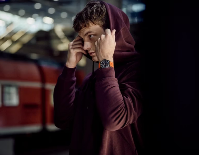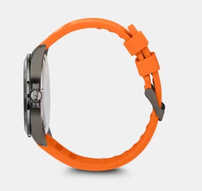 Esthétique sportive et audacieuse rehaussée par un traitement PVD gris acier moderne et affichant une aiguille des secondes avec contrepoids en forme de couteau suisse coloré
