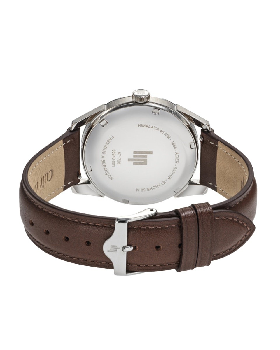 Cette montre Lip Himalaya au style à la fois très élégant et différenciant possède un boîtier de 40 mm en acier inoxydable 316L poli et brossé, monté sur un bracelet en cuir de vachette lisse marron, surpiqué en ton sur ton, muni d'une boucle ardillon chromée siglée LIP. Son cadran vert très foncé accueille des chiffres arabes blancs en index ainsi qu'un compteur à 6h pour la petite seconde. Ses longues et fines aiguilles sont elles aussi blanches pour une parfaite lecture et sont protégées par un verre saphir traité antireflet. Ce modèle quartz au fond de boîte vissé affiche une étanchéité à 50 m. Une montre intemporelle et fiable, qui vous accompagnera dans votre quotidien avec style et prestance.