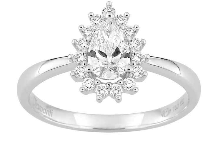 Bague en or gris sertie en son centre d'un diamant de laboratoire de forme poire d'nviron 0.50ct et d'un pavage diamants de laboratoire d'environ 0.20ct