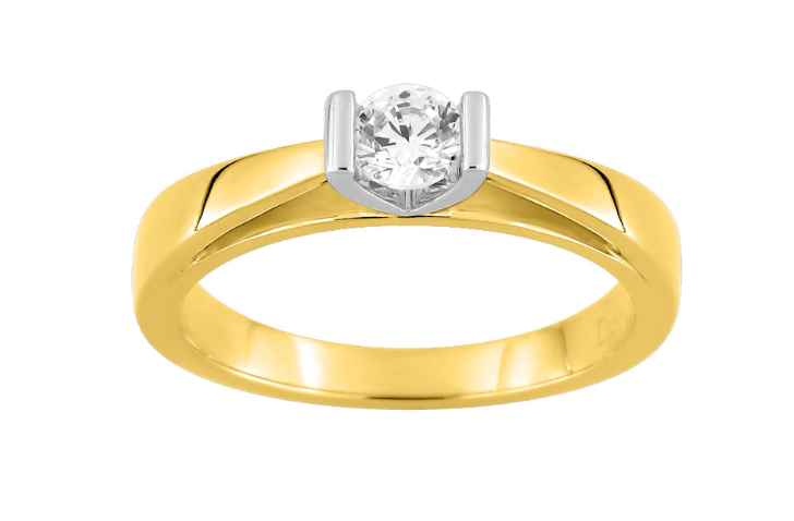 Bague solitaire en or 18 carats bicolore diamant de laboratoire 0.30 ct, avec certificat.