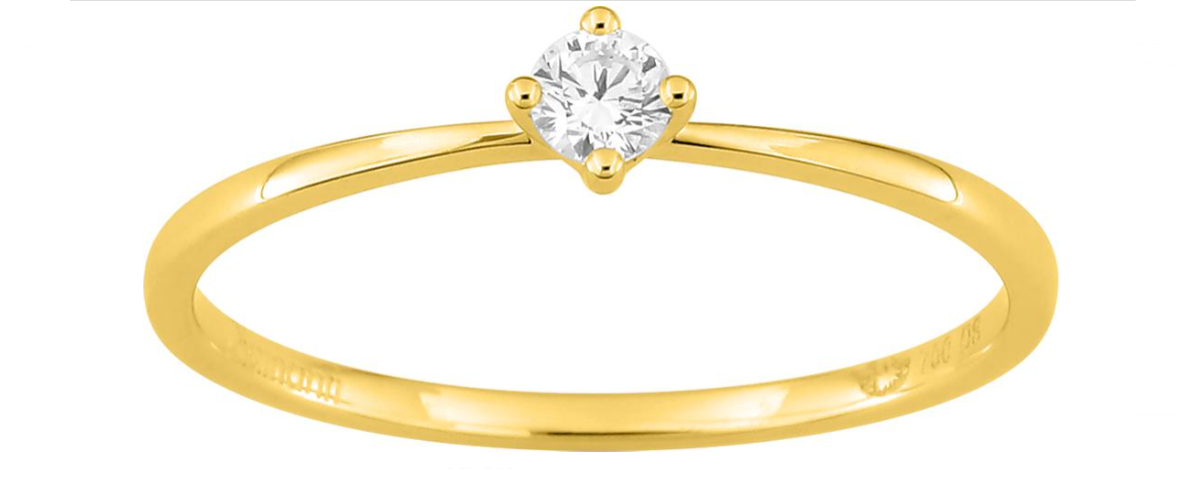 Bague solitaire or jaune 18 carats diamant de laboratoire 0.10ct.