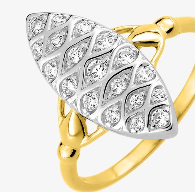 Bague marquise plaqué or, rhodium et oxydes de zirconium.