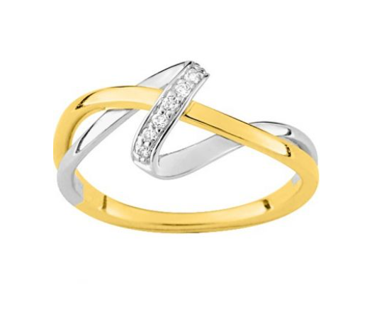 Bague plaqué or bicolore, vague pavée d'oxydes de zirconium.