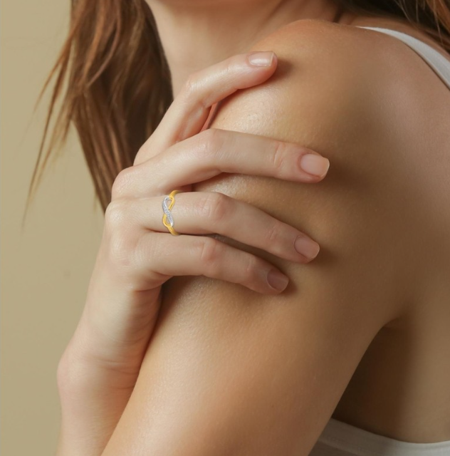 Bague infini bicolore plaqué or, rhodium et oxydes de zirconium