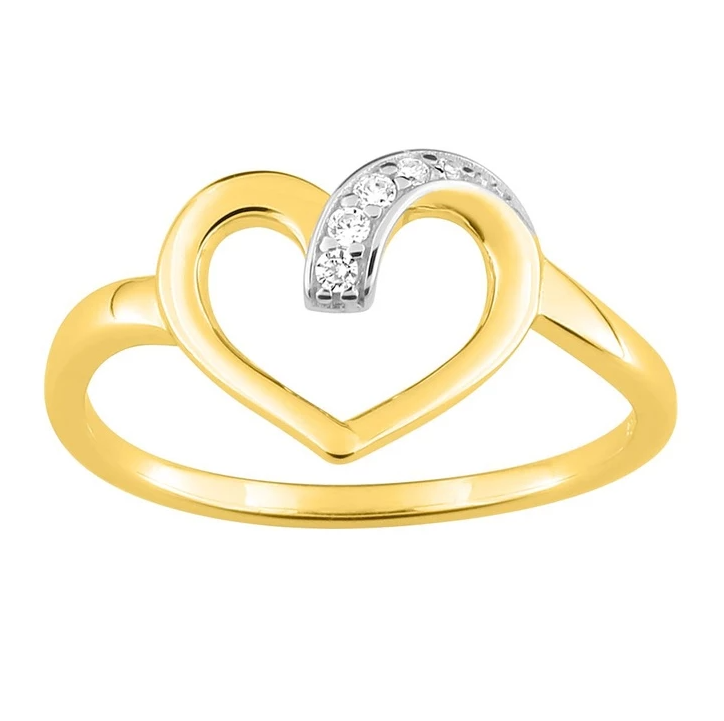 Bague plaqué or bicolore de forme coeur sertis d'oxydes.