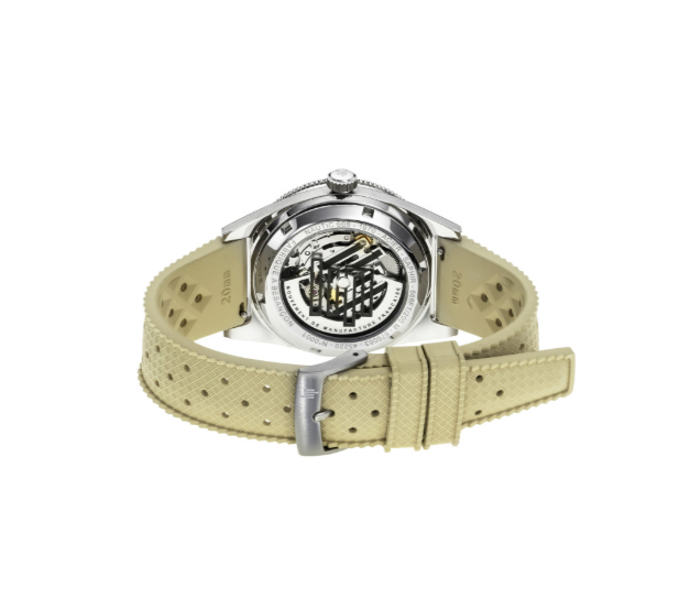 Conçue à la fin des années 1960 pour répondre aux exigences du marché nord-américain, la Nautic 666, surnommée "Devil Diver", est rapidement devenue une montre emblématique dans le domaine des montres de plongée. Reconnue pour sa résistance et son design distinctif, cette montre étanche de la marque LIP est capable de résister à des profondeurs allant jusqu’à 200 mètres, faisant d’elle un choix parfait pour les passionnés de plongée et de sports nautiques. Son boîtier de 39 mm en acier inoxydable 316L brossé assure une protection maximale contre la corrosion et les chocs, garantissant une robustesse à toute épreuve. La montre est équipée d’une lunette tournante unidirectionnelle de 90 clics avec un insert en aluminium anodisé gris, ce qui lui confère à la fois une grande fonctionnalité et un aspect esthétique unique. Le cadran noir soleillé, d’une finesse remarquable, recouvre le calibre LIP R26, un mouvement mécanique à remontage automatique fabriqué à Besançon. Ce calibre historique marque une étape importante dans l’histoire de LIP, étant le premier mouvement automatique produit depuis les ateliers bisontins après Fred LIP. Parfaite pour les passionnés de plongée, la Nautic 666 est protégée par un verre saphir légèrement bombé, traité antireflet sur les deux faces pour une lecture optimale, même dans des conditions de faible luminosité, tandis que le dateur est équipé d’une loupe pour en faciliter la lecture. De plus, les index luminescents "old radium" assurent une visibilité excellente, même dans l’obscurité et sous l’eau. Le bracelet de cette montre de plongée est en élastomère beige et se ferme avec une boucle à ardillon chromée siglée LIP, garantissant un maintien fiable et un confort optimal. Le fond transparent vissé, orné d’un verre plat, permet d’observer le mouvement automatique de fabrication française tout en dévoilant le balancier oscillant à 3 hertz. Le logo LIP est visible à travers les mouvements de la masse oscillante, ajoutant une dimension esthétique à son fonctionnement technique. Avec une étanchéité garantie jusqu’à 200 mètres de profondeur, la Nautic 666 est une montre de plongée exceptionnelle. Bien que chaque modèle soit numéroté individuellement, cette montre n’est pas une édition limitée, offrant ainsi une disponibilité continue pour les collectionneurs et les amateurs de belles montres.