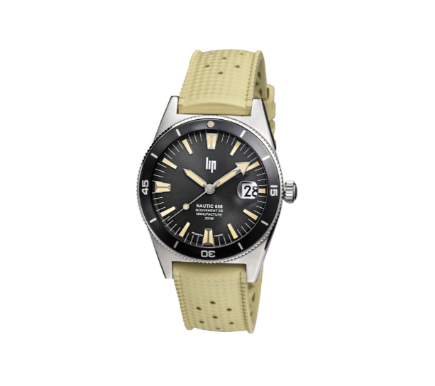 Développée à la fin des années 1960 pour le marché nord-américain, la Nautic 666, surnommée « Devil Diver », est célèbre pour son cadran indiquant une profondeur maximale de 200 mètres. Fred Lip, audacieux en communication, a osé afficher cette spécificité technique, défiant les superstitions de l’époque. Aujourd’hui, ce modèle mythique fait son retour dans la collection LIP avec un boîtier en acier inoxydable de 39 mm, une lunette tournante et un fond transparent révélant le calibre R26, premier mouvement automatique de la manufacture depuis Fred Lip.