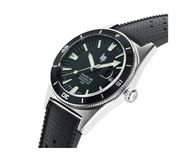 Développée à la fin des années 1960 pour le marché nord-américain, la Nautic 666, surnommée « Devil Diver », est célèbre pour son cadran indiquant une profondeur maximale de 200 mètres. Fred Lip, audacieux en communication, a osé afficher cette spécificité technique, défiant les superstitions de l’époque. Aujourd’hui, ce modèle mythique fait son retour dans la collection LIP avec un boîtier en acier inoxydable de 39 mm, une lunette tournante et un fond transparent révélant le calibre R26, premier mouvement automatique de la manufacture depuis Fred Lip.