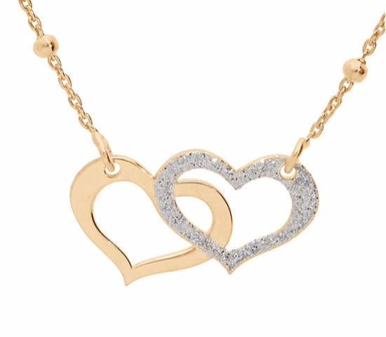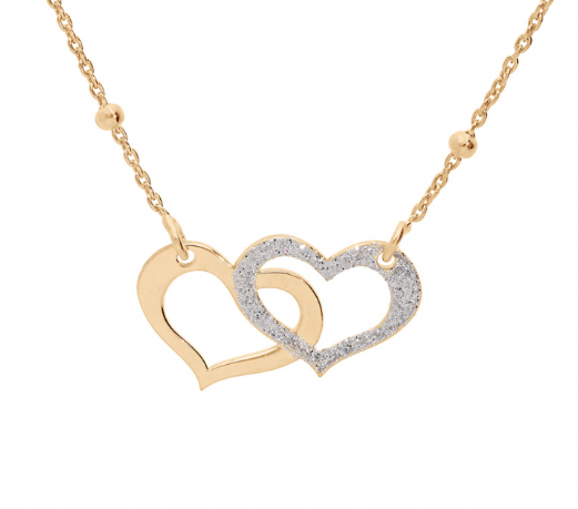 Collier ajustable double coeurs 1 lisse et 1 granité, en argent doré.