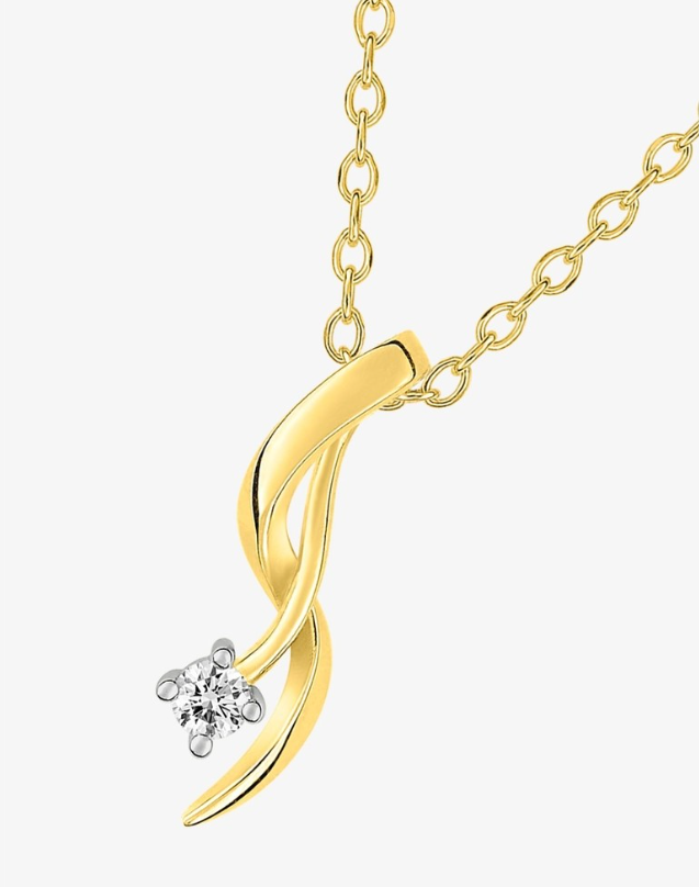 Cette chaîne forçat possède deux lignes entremêlées en plaqué or qui arborent un oxyde de zirconium de 2 mm de diamètre serti griffes sur du rhodium. Ce collier mesure 40 cm avec 3 cm de chaîne de rappel en plus, il possède un fermoir en anneau ressort et le pendentif mesure 17 mm de hauteur. Une fine et délicate touche d'élégance.