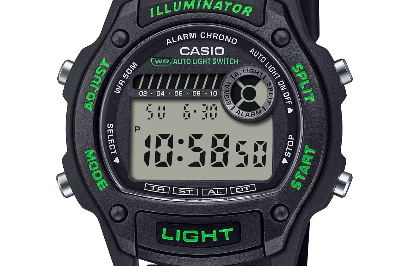 Confortable et pratique - une montre numérique de taille moyenne avec un boîtier de 36,6 mm qui s'adapte facilement aux poignets les plus fins. Pour plus de facilité d’utilisation, la montre est équipée d'un éclairage LED entièrement automatique et d'un bouton d'éclairage dédié sur l‘avant. Le boîtier est fabriqué à partir de résine biosourcée, un matériau choisi parce qu’il contribue à réduire l'impact sur l'environnement.