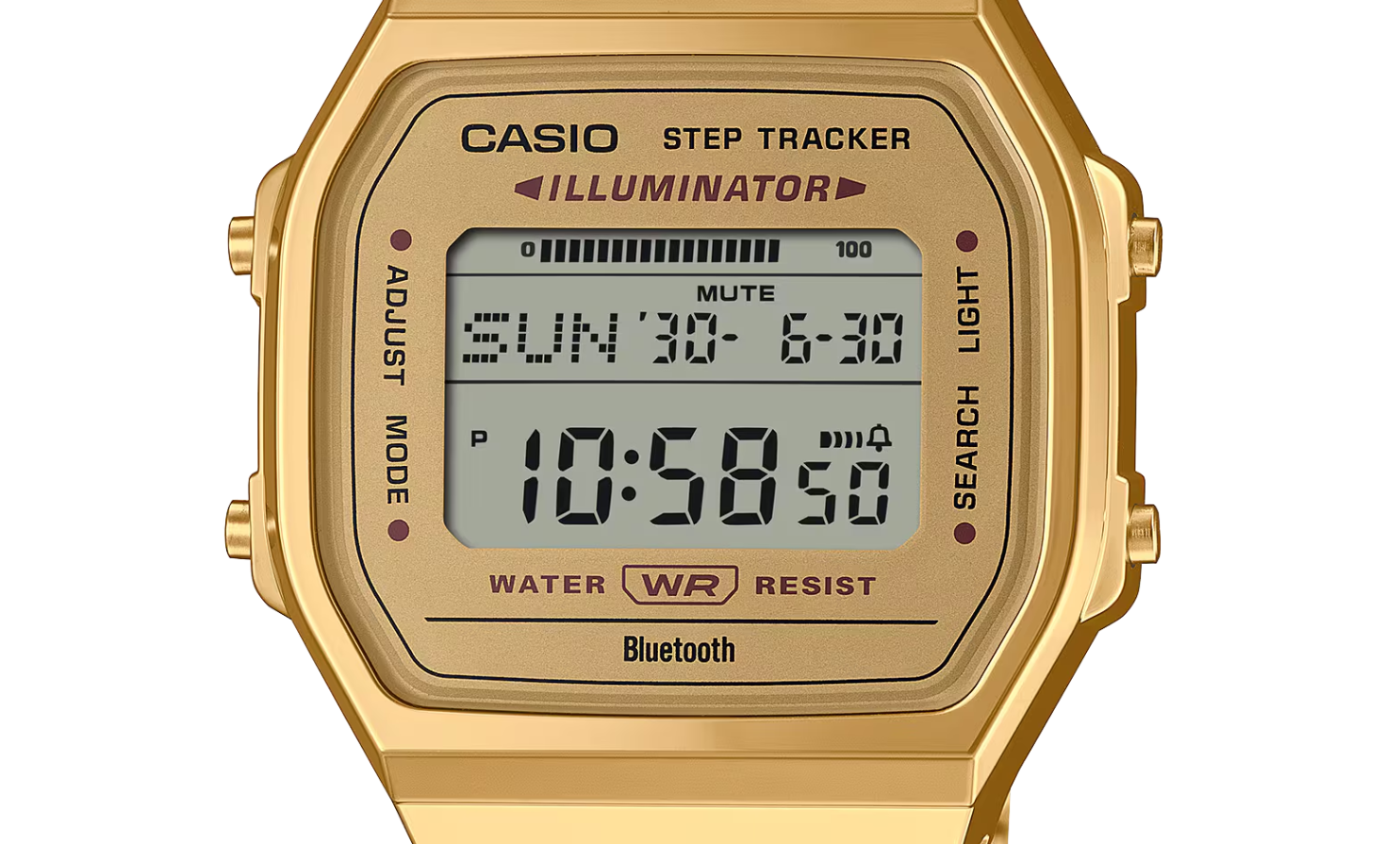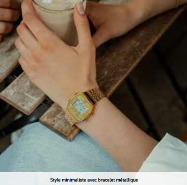 La mode vintage se pare de modernité, grâce à des montres qui allient un style rétro à des fonctionnalités de pointe. Le design classique se teinte d’une allure retro grâce à un boîtier simple qui s'harmonise avec le bracelet métallique à plusieurs mailles, dont la structure à plat assure un port confortable. Mais ne te laisse pas avoir par son look vintage. La montre est dotée d'une technologie de pointe très utile qui t’aidera à adopter un mode de vie sain. Le capteur intégré détecte les mouvements du corps et compte automatiquement les pas. Tu peux ensuite vérifier le nombre de pas que tu as effectués dans la journée directement sur l’écran LCD. La Synchronisation avec ton smartphone via Bluetooth® permet une correction automatique de l'heure et tu peux configurer plus facilement diverses fonctions de la montre à partir de l'application. Tu peux par exemple utiliser l’application pour transférer le nombre de pas et les autres données enregistrées sur la montre et les afficher ainsi sur ton téléphone. Utilise ainsi toutes les données du journal de vie pour gérer ta santé au quotidien.