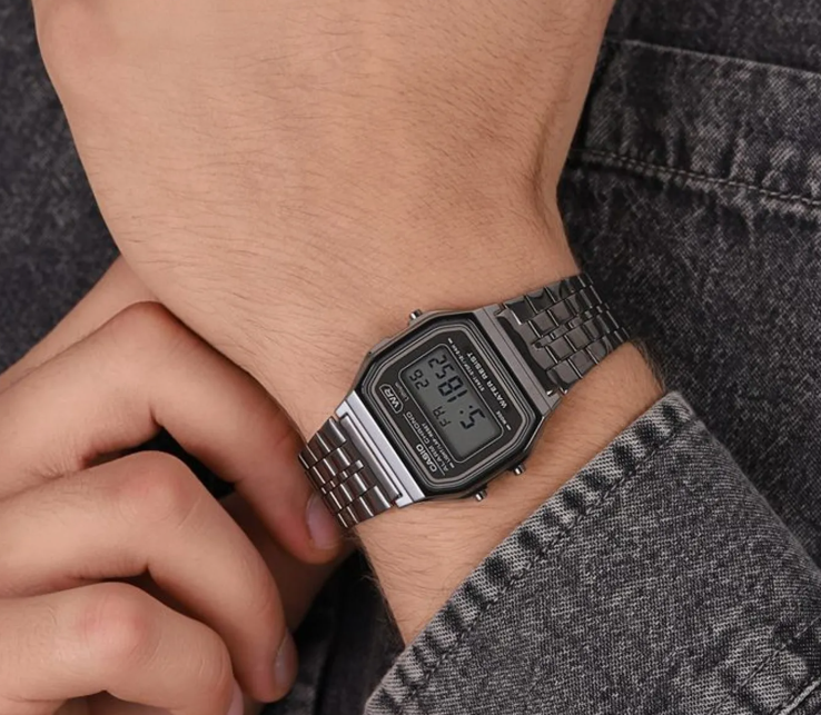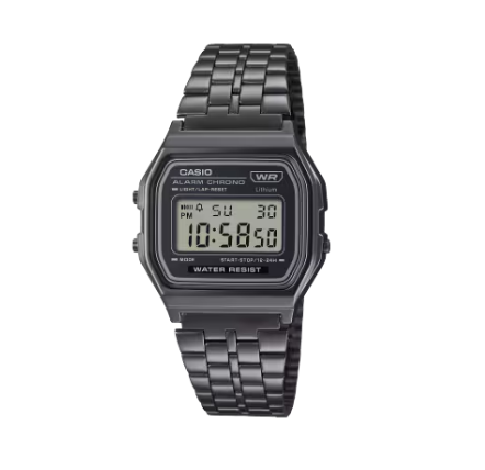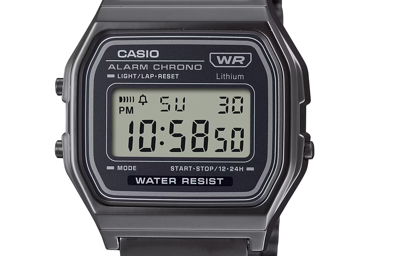 • Chronomètre à 1/100e de seconde • Éclairage LED • Bracelet en acier inoxydable • Étanchéité • Cadran carré.