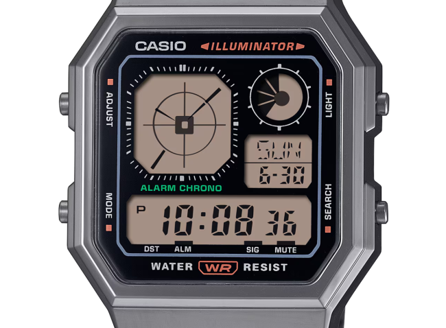 En plus de posséder un design qui rappelle les gadgets que vous aimez tant, cette montre numérique est dotée d'un affichage analogique de l'heure. Le cadran rétro-futuriste associe des couleurs métalliques élégantes à des touches de couleurs vives, et vient ainsi témoigner d'une passion pour les gadgets. Audacieusement éclectique et pratique, elle est dotée de fonctionnalités utiles telles que la résistance à l'eau, le rétroéclairage LED, le chronomètre, l'alarme et bien plus encore.