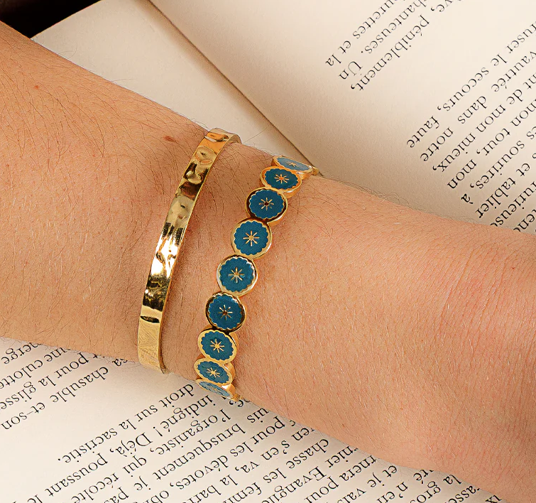 Le bleu canard séduit par sa profondeur et son équilibre entre fraîcheur et élégance. Associé à des touches dorées, il apporte de la lumière et du caractère sans en faire trop. Très apprécié dans les tendances féminines actuelles, ce bracelet en acier inoxydable bleu canard et doré pour femme s’intègre facilement au quotidien tout en affirmant le style.