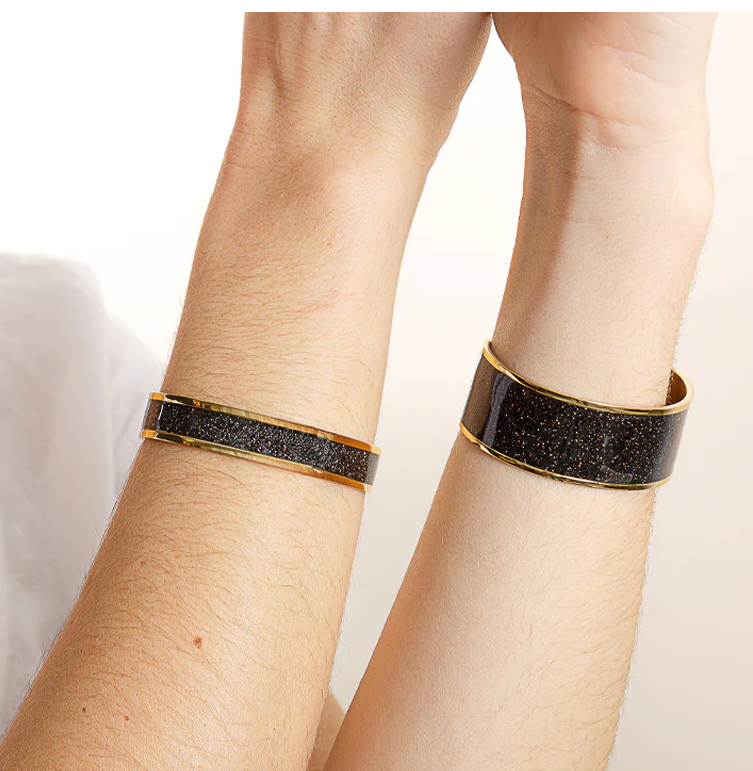Le noir séduit par son élégance naturelle et son intemporalité. Facile à associer, il traverse les saisons sans se démoder. Rehaussé de paillettes, le jonc noir et paillettes en acier pour femme gagne en lumière et en caractère, tout en restant facile à porter au quotidien.