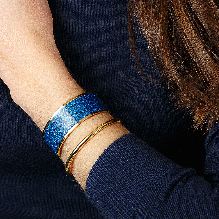 Le bleu lagon évoque la fraîcheur des eaux d’été et l’éclat des journées ensoleillées. Les paillettes captent la lumière apportant un souffle lumineux au poignet. Conçue en acier inoxydable 316L, cette manchette été bleu lagon à paillettes en acier inoxydable allie résistance, confort et brillance durable, idéale pour sublimer les tenues estivales et donner une touche joyeuse et raffinée à chaque tenue.