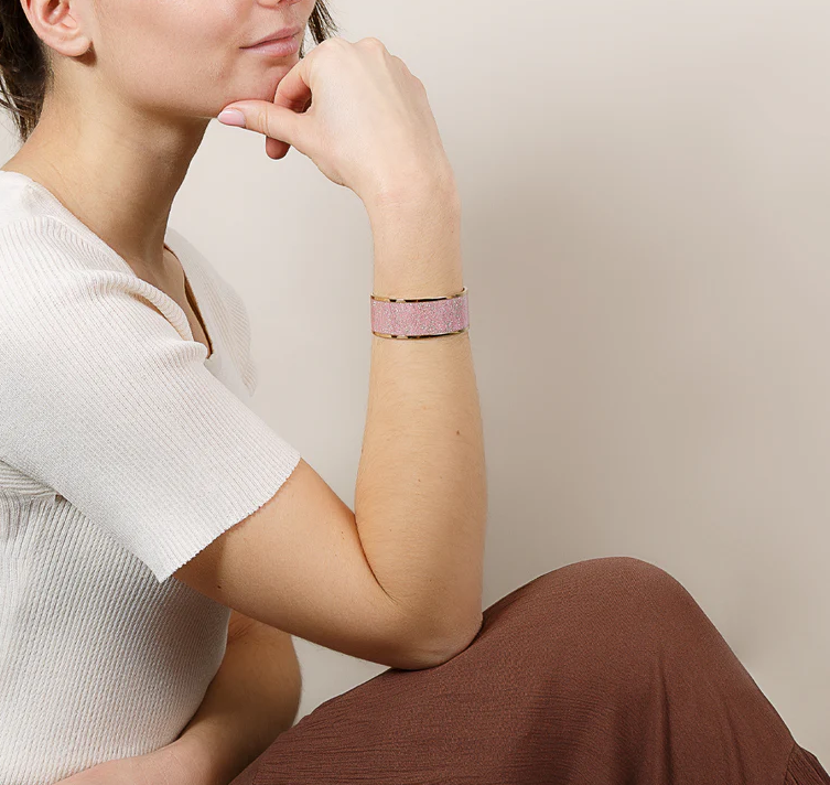 Le rose pastel évoque douceur et délicatesse, tandis que les paillettes apportent un éclat subtil et féminin au poignet. Cette manchette paillettes en acier inoxydable rose pastel conjugue confort et résistance, idéale pour sublimer une tenue légère ou ajouter une touche raffinée à une tenue quotidienne.