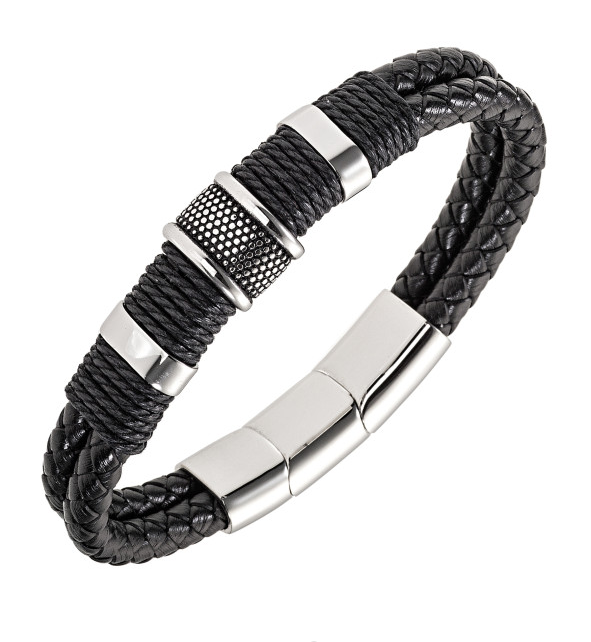 Bracelet Homme All Blacks Acier Noir & Cuir –
