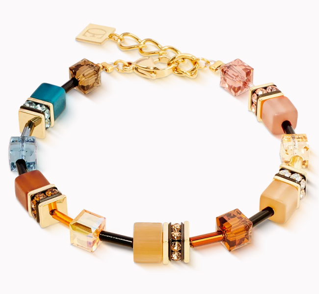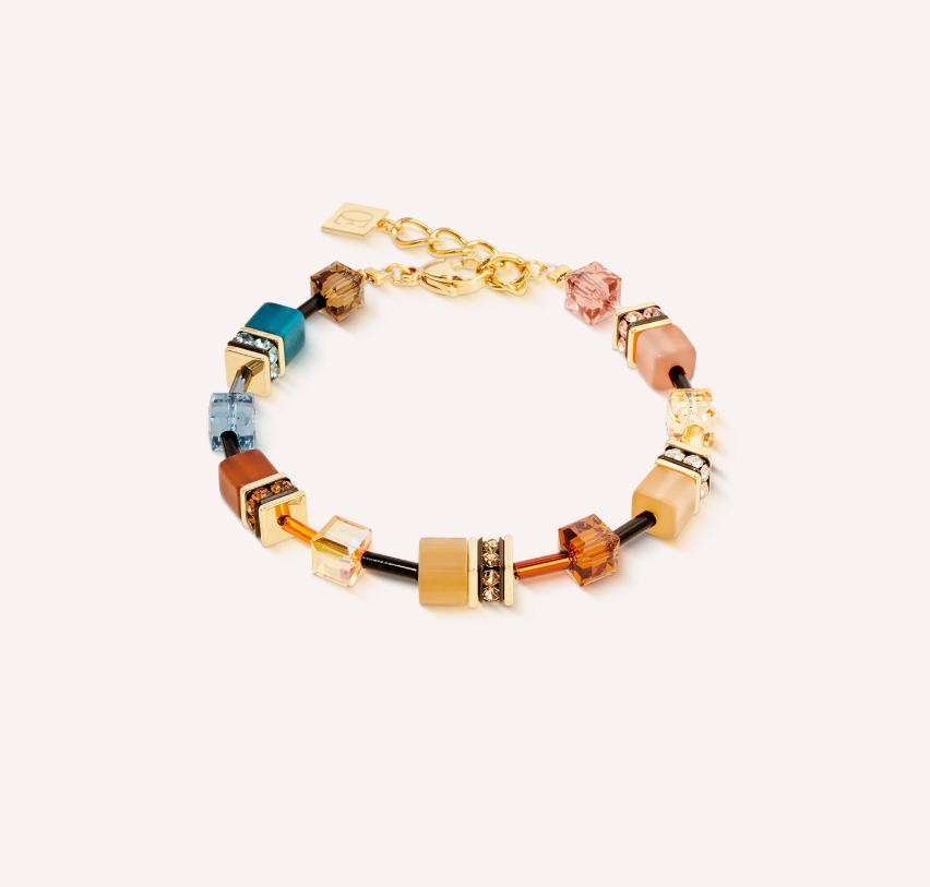 Ce bracelet fait partie de la série distinctive GeoCUBE® Iconic - connue pour ses lignes claires, sa précision géométrique et la force de ses couleurs. Dans la variante Earth Mirage, il combine des tons naturels chauds avec des accents étincelants d'or et d'orange. La composition harmonieuse confère à chaque look une élégante mise à la terre - portée seule ou en ensemble avec un collier et des pendants d'oreilles, elle est une déclaration de style.