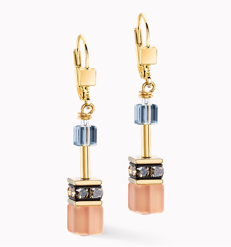 Les boucles d'oreilles Earth Mirage interprètent le design GeoCUBE® Iconic avec une légèreté subtile. Avec leurs éléments cubiques aux doux tons de terre et à l'or scintillant, ils captent la lumière avec élégance. Un accessoire stylé pour toutes celles qui aiment le look typique de COEUR DE LION - parfaitement combinable avec le bracelet ou le collier assorti de la série.