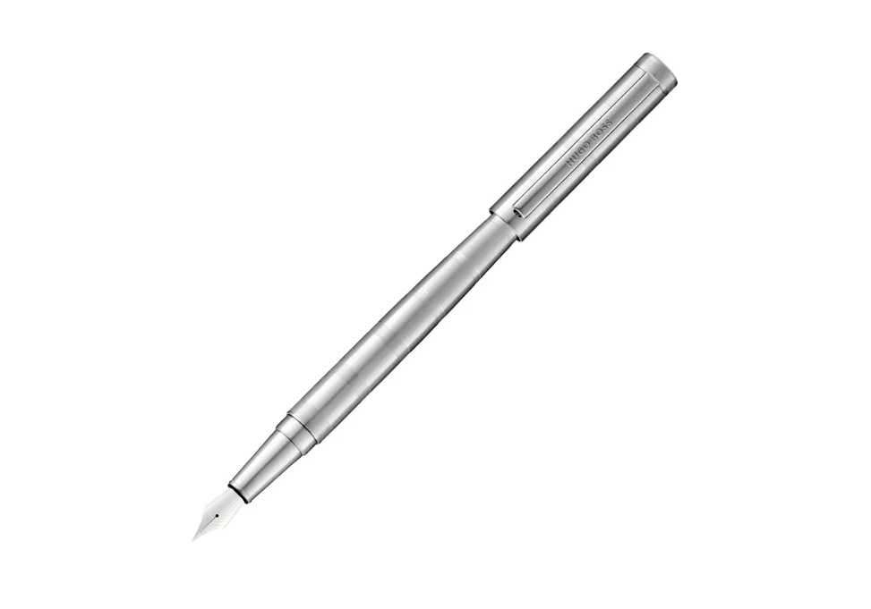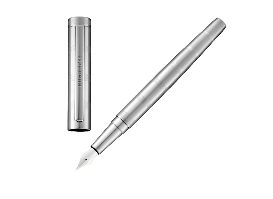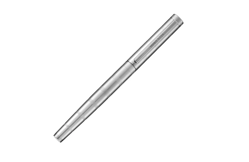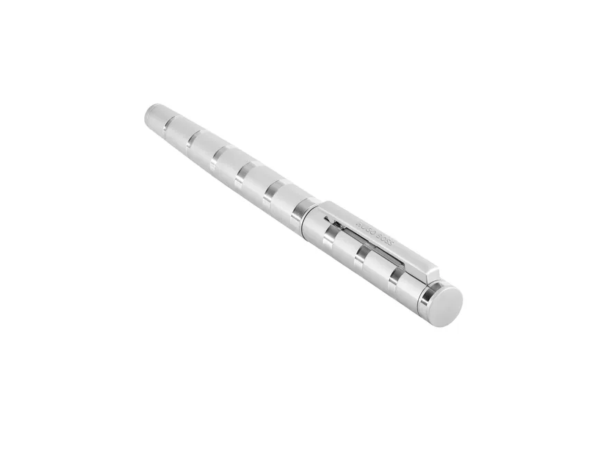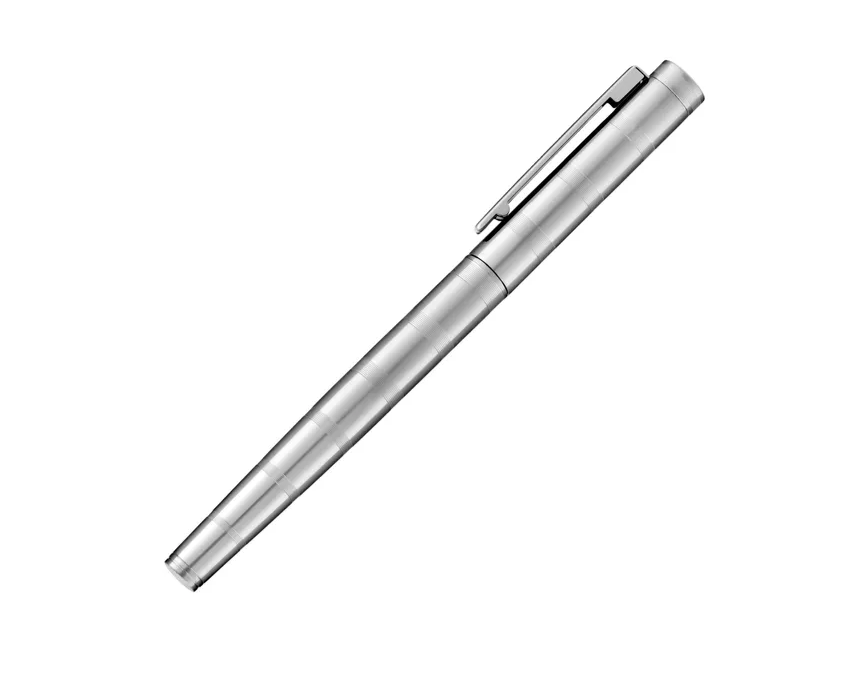 Le stylo Loop Stripe s'inspire de la silhouette emblématique du Loop, offrant une version sobre et luxueuse de cette forme iconique. Disponible en deux finitions sobres, canon de fusil mat ou chrome brillant, il se distingue par un motif évolutif de fines rayures horizontales si rapprochées qu'elles sont à peine visibles au premier abord, créant ainsi un effet de contraste. Cette texture subtile met en valeur le motif rayé irrégulier tout en préservant la sobriété et le raffinement de l'objet.