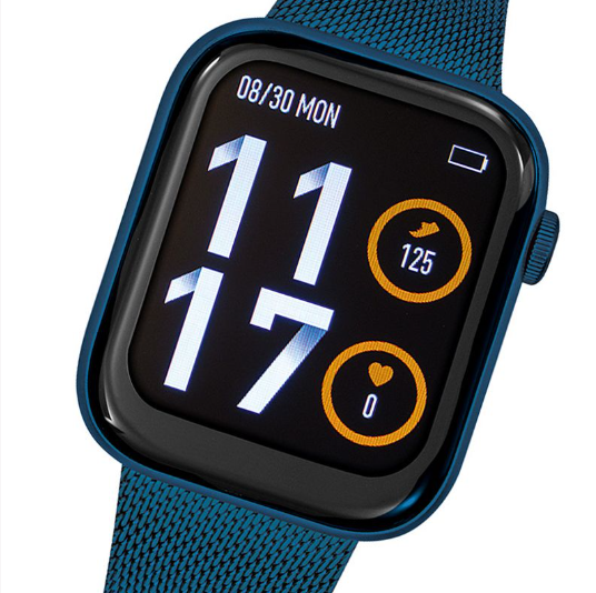 Boitier : boîtier bleu, acier milanais bleu