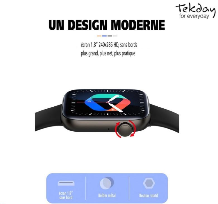 Avec son design élégant, ses fonctionnalités intelligentes et sa longue autonomie, la montre connectée Tekday est le compagnon idéal pour tous ceux qui recherchent un mode de vie plus sain et plus connecté.