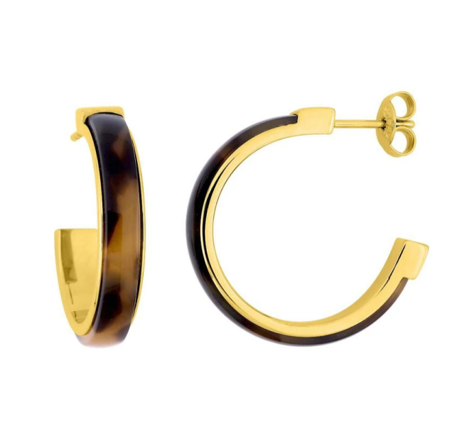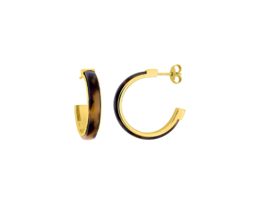 Demi créoles en acier doré et résine tons chauds marron.
