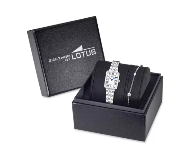 La Lotus 2Gether 19032/1 associe un cadran blanc à un boîtier boîtier en acier inoxydable, un design moderne et élégant. Proposée dans un coffret raffiné avec un bracelet assorti, elle est parfaite pour offrir un cadeau chic et contemporain.