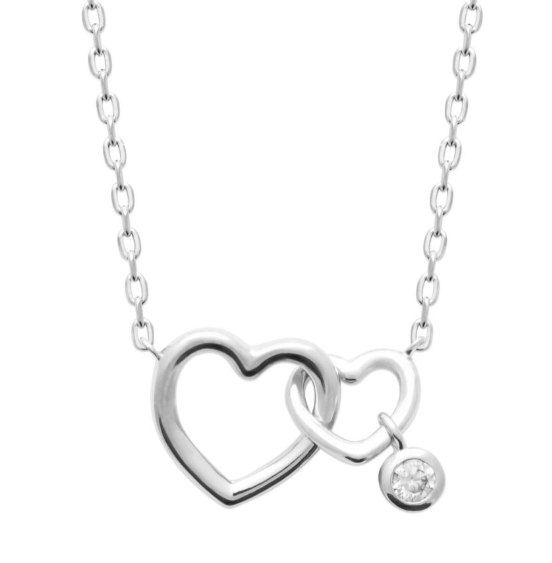 Collier argent double cœur breloque