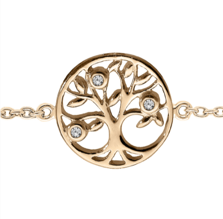 Bracelet ajustable en plaqué or arbre vie oxydes blancs sertis 15.5+2.5cm.