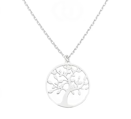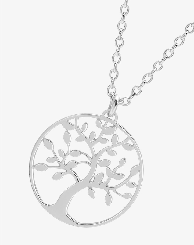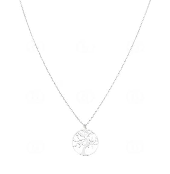 Optez pour un bijou tendance et riche de sens avec ce collier en argent rhodié. Il arbore un pendentif de 17 mm de diamètre avec un motif d'arbre de vie ajouré. La chaîne forçat a une longueur de 42 cm.