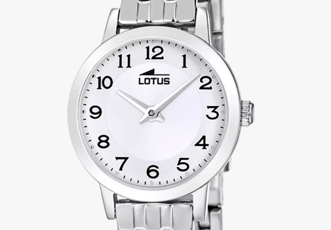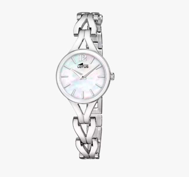 Montre Lotus pour femme. Avec un boîtier en acier inoxydable et verre minéral, équipé d'un bracelet en acier inoxydable.