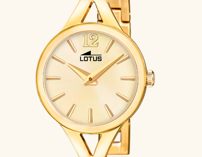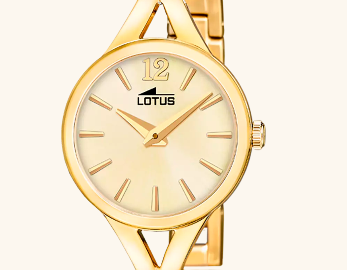Montre Lotus pour femme. Avec un boîtier en acier inoxydable et verre minéral, équipé d'un bracelet en acier inoxydable.
