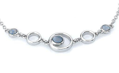 Description | Bracelet avec opale bleue doublet ronde, en argent rhodié, longueur 18+1 cm