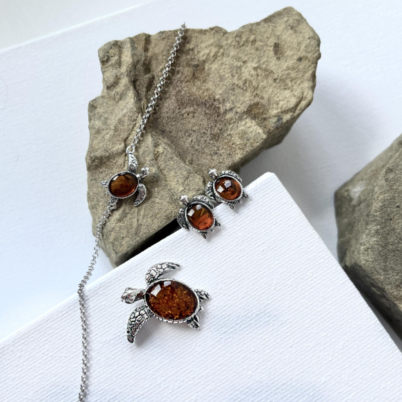 Découvrez notre pendentif tortue avec ambre cognac ovale, conçu spécifiquement pour les professionnels du secteur de la bijouterie. Ce bijou est destiné aux détaillants cherchant à offrir à leurs clients des pièces uniques et élégantes. Conçu en argent rhodié vieilli 925/1000, ce pendentif allie le charme intemporel de l'ambre de la Mer Baltique à une finition soignée et durable.