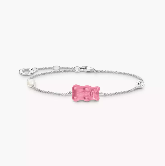 Il est confectionné en cristal rose de qualité supérieure, résistant à la casse et légèrement satiné et orné au verso de la gravure THOMAS SABO x HARIBO. Il est accompagné d’une petite perle de culture d’eau douce et d’une zircone blanche taillée en cœur. En tant que fan du fameux ours gélifié, associez le bracelet avec tout – comme clin d’œil avec une tenue élégante ou comme complément parfait de votre look Y2K.