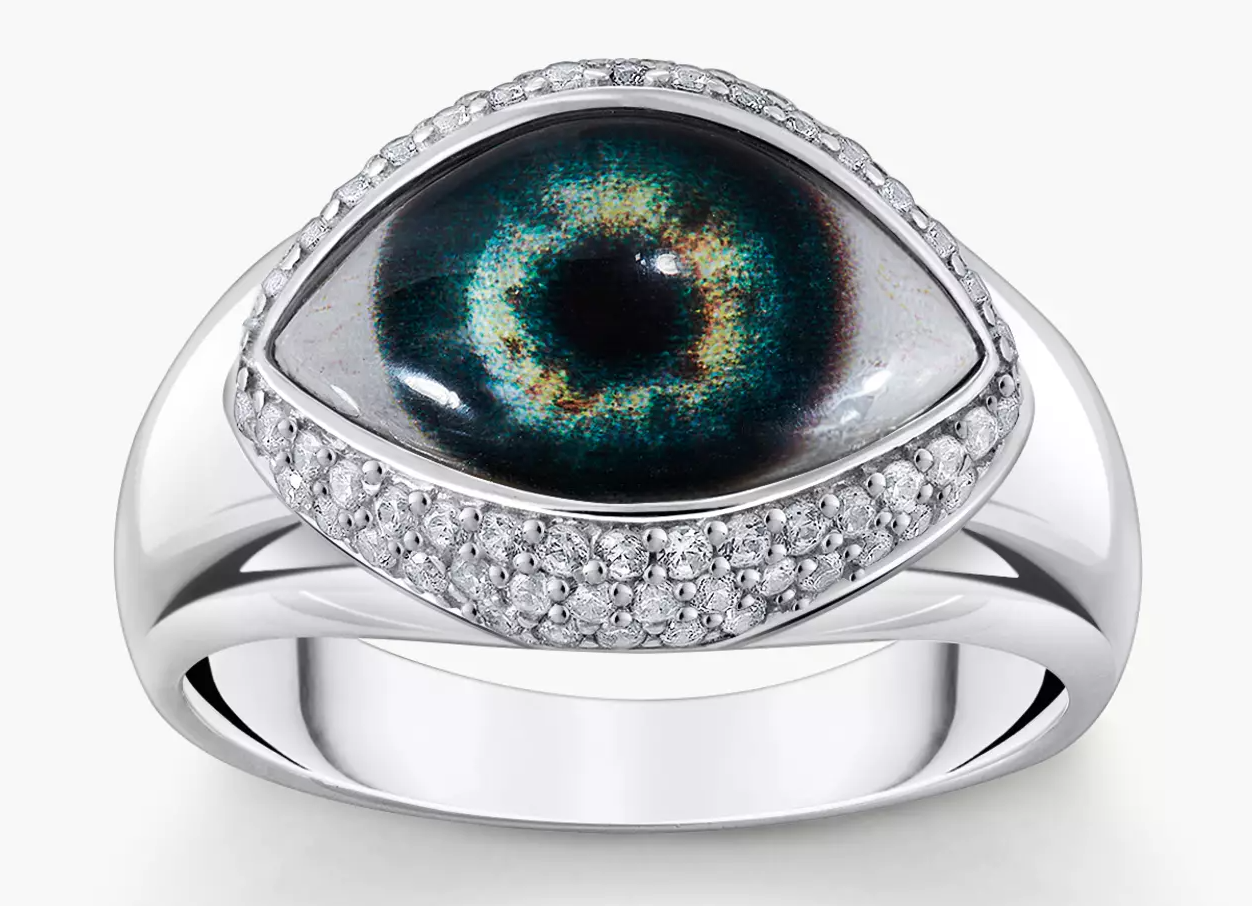 Bague en argent avec un œil qui voit tout avec des zircons blancs