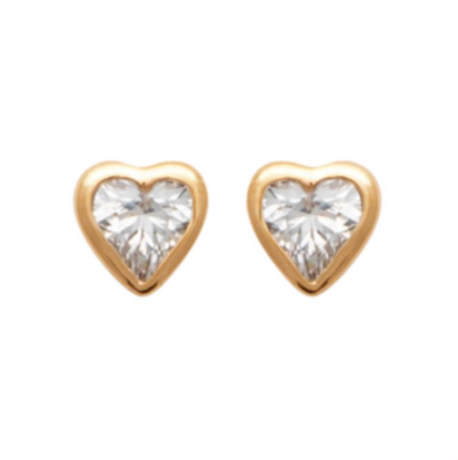 Boucles d'oreilles coeurs en oxyde de zirconium blanc, poussette plaqué or