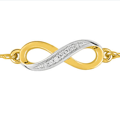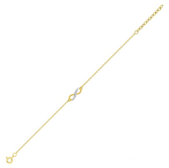 Bracelet plaqué or ajustable, signe infini bicolore pavage oxydes.