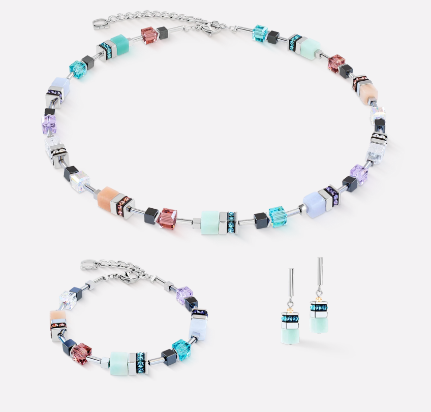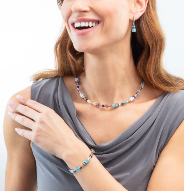 Le bracelet GeoCUBE® Precious Motion Sorbet argent reflète le langage formel iconique de la collection dans une composition délicate et expressive. Amazonite, calcédoine et aventurine rose s’allient à l’hématite et aux cristaux Swarovski® pour créer un jeu harmonieux de couleurs et de textures. Les tons sorbet apportent une légèreté élégante.