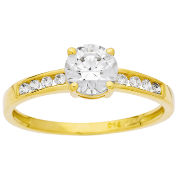 Solitaire accompagné en or jaune, sertis d'un oxyde 6mm et pavage oxydes.
