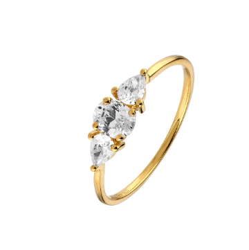 Bague trilogie or jaune 9 carats et oxydes de zirconium.