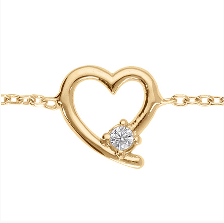 Bracelet en argent doré ajustable, motif coeur avec un oxyde blanc serti - 16+3cm.