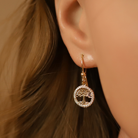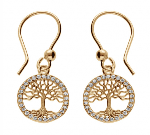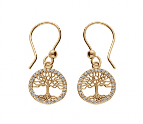 Boucles d'oreille en plaqué or arbre de vie contour oxydes blancs sertis, fermoir crochet.