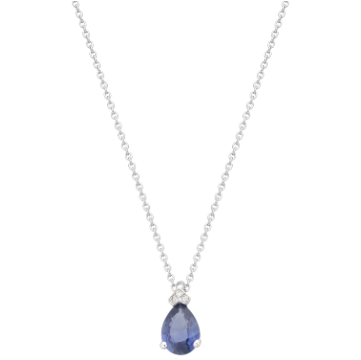 Sublime collier ajustable en OR Blanc avec un pendentif serti d'un Saphir Bleu "Poire", réhaussé par 3 Diamants. Le Saphir "Poire" est serti par 3 griffes, vous assurant ainsi une tranqulité lorsque vous le porterez. Le pendentif est livré avec une chaine maille Forçat Ronde.