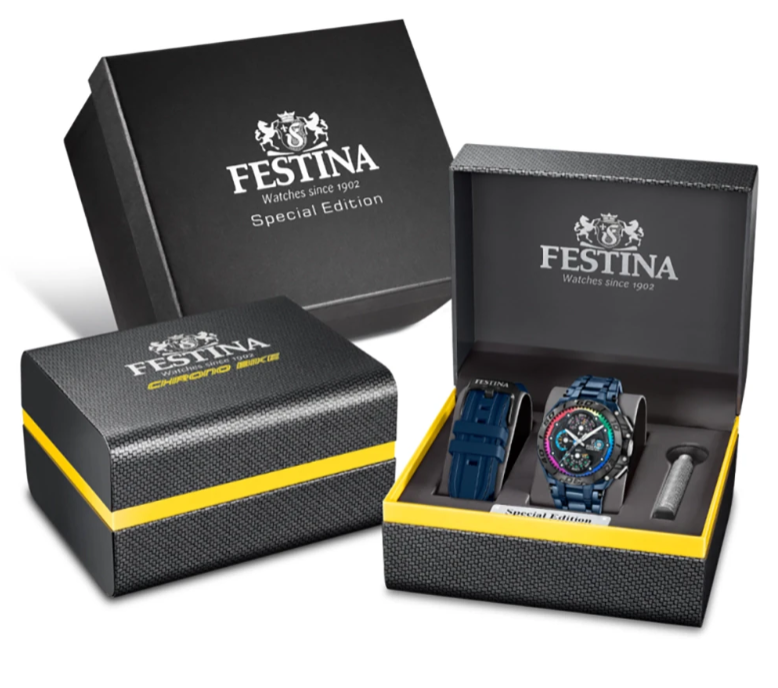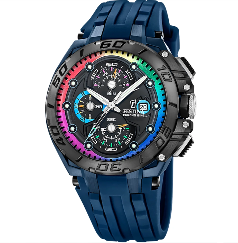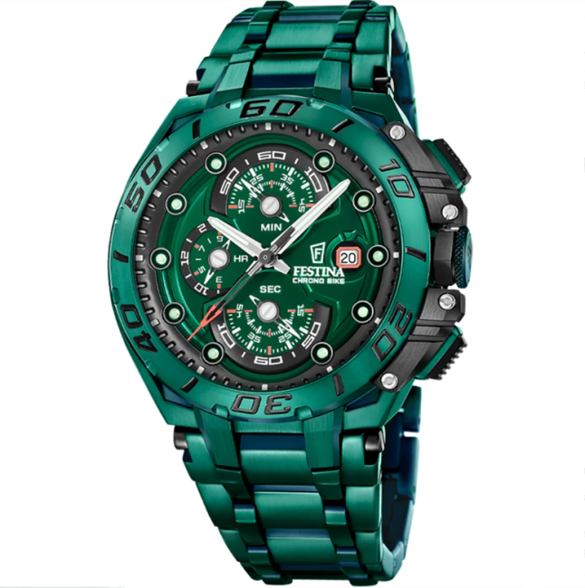 Cette montre Festina a un boîtier Inox 46 mm en diamètre et est équipée d'un bracelet Inox. Le boîtier contient un mouvement Miyota et la montre est dotée d'un cristal Minéral..